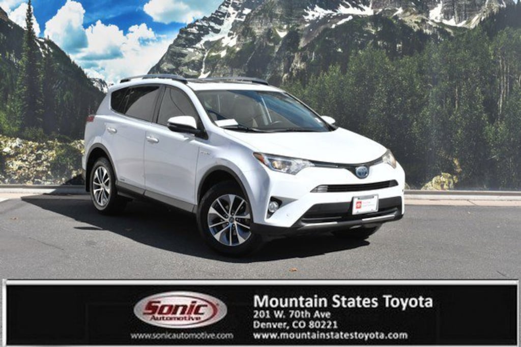 Look at this 2018 Toyota RAV4 Hybrid LE Plus. Its Variable transmission and Gas/Electric I-4 2.5 L/152 engine will keep you going. This Toyota RAV4 features the following options: Wheels: 17 x 7.0J 5-Spoke Alloy -inc: caps, Valet Function, Urethane Gear Shifter Material, Trip Computer, Transmission: CVT (Continuously Variable), Transmission w/Driver Selectable Mode, Sequential Shift Control and Oil Cooler, Toyota Safety Sense C, Towing Equipment -inc: Trailer Sway Control, Tires: P225/65R17H AS, and Tailgate/Rear Door Lock Included w/Power Door Locks. See it for yourself at Mountain States Toyota, 201 W 70th Ave, Denver, CO 80221.