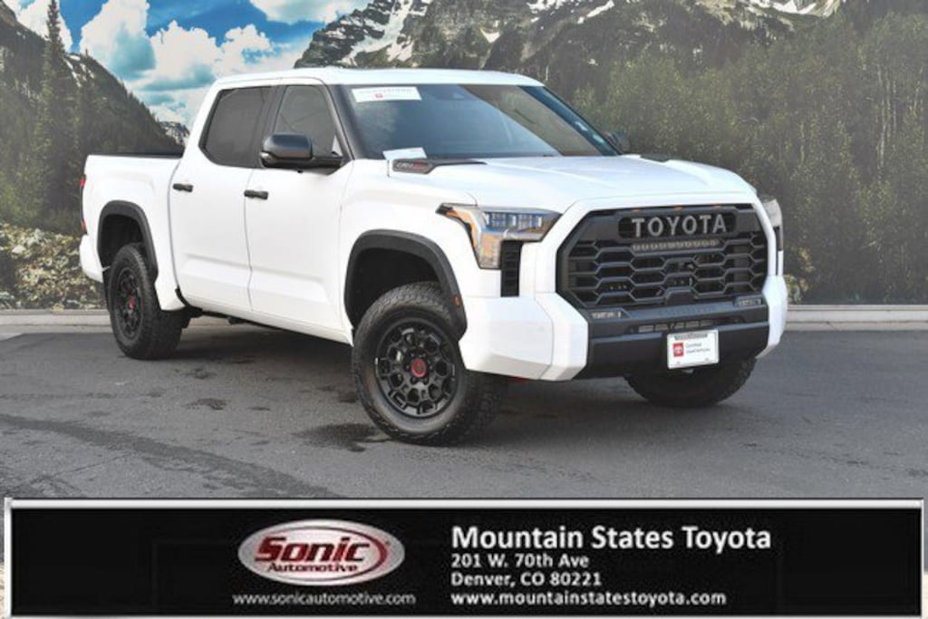 Look at this 2025 Toyota Tundra 4WD TRD Pro Hybrid. Its Automatic transmission and Twin Turbo Gas/Electric V-6 3.4 L/210 engine will keep you going. This Toyota Tundra 4WD has the following options: Wireless Phone Connectivity, Wheels: 18 x 8 Black BBS Forged Aluminum, Vehicle Stability Control (VSC) Electronic Stability Control (ESC), Turn-By-Turn Navigation Directions, Trip Computer, TRD Leather Gear Shifter Material, Transmission: 10-Speed Electronic Controlled Auto -inc: intelligence (ECT[-i]), sequential shift mode, uphill/downhill shift logic and TOW/HAUL driving modes, Transmission w/Driver Selectable Mode and Oil Cooler, Trailer Wiring Harness, and Tracker System. Test drive this vehicle at Mountain States Toyota, 201 W 70th Ave, Denver, CO 80221.