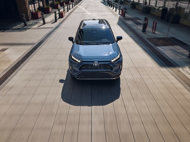 The 2025 Toyota RAV4 Hybrid features rugged looks that will always grab some attention. The cladded wheel arches and wide, frowning grille give the RAV4 Hybrid an aggressive overall design. And with two-tone color options available, you can make your new hybrid SUV your own with a unique sense of style. Underbody panels and a sleek front and rear bumper help add efficiency to the equation, helping you get the most out of every mile in your new RAV4 Hybrid or RAV4 PHEV.