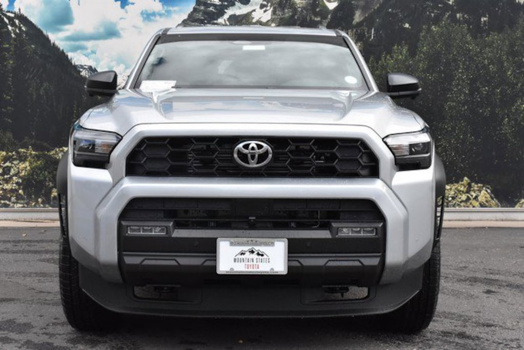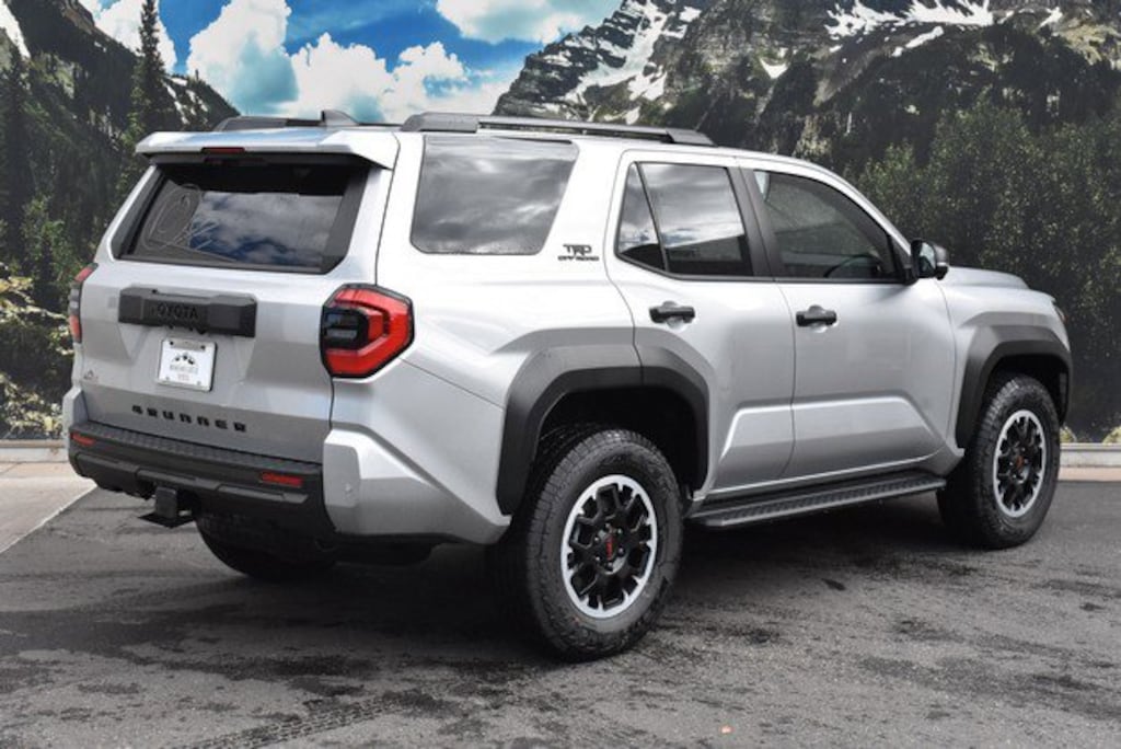 • Black honeycomb-style grille, mirror caps, door handles, and overfenders color-keyed rear spoiler black 'TRD OFF ROAD' and '4RUNNER' badges