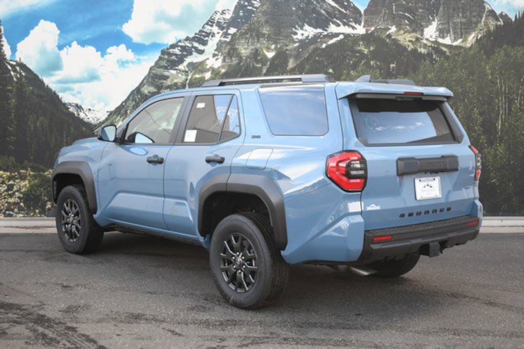 • Black horizontal-bar grille, mirror caps, door handles, and overfenders color-keyed rear spoiler black 'SR5' and '4RUNNER' badges