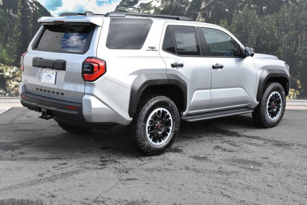 • Black honeycomb-style grille, mirror caps, door handles, and overfenders color-keyed rear spoiler black 'TRD OFF ROAD' and '4RUNNER' badges