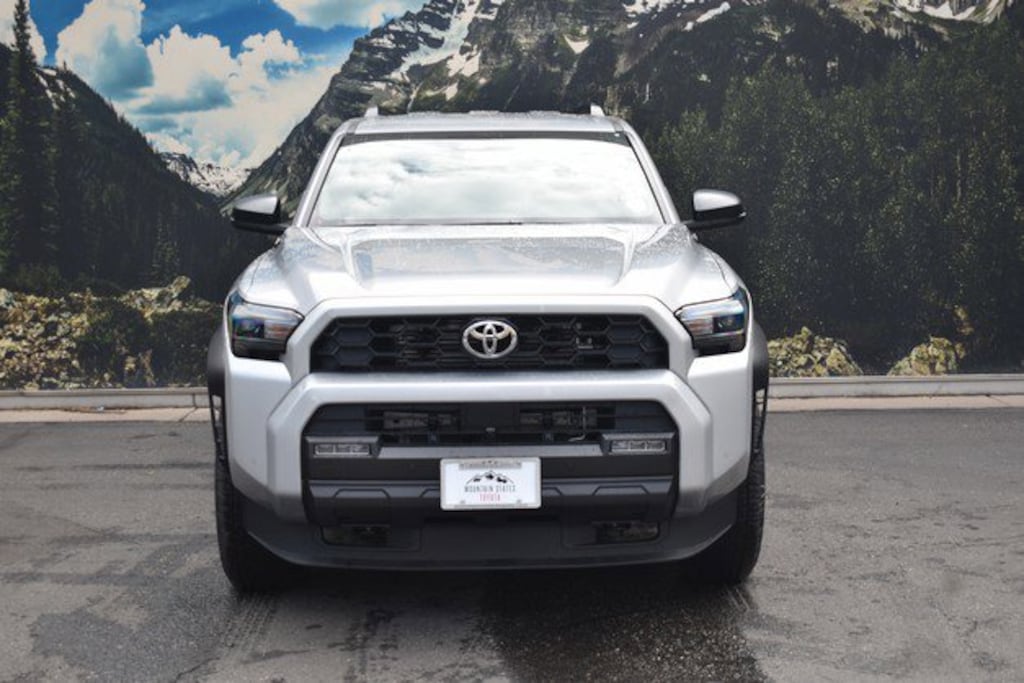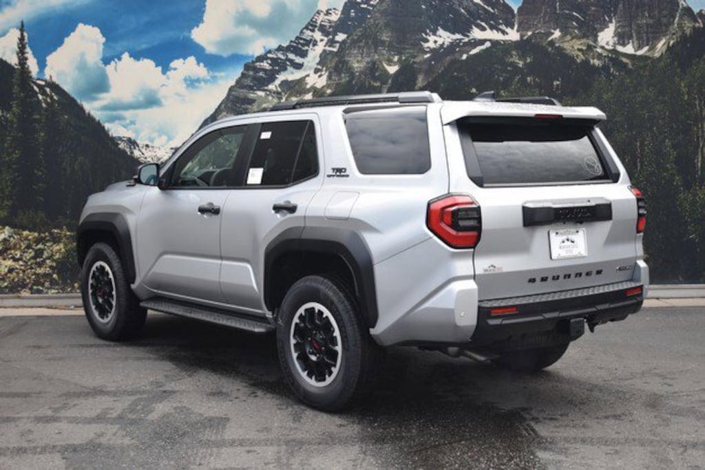 • Black honeycomb-style grille, mirror caps, door handles, and overfenders color-keyed rear spoiler black 'TRD OFF ROAD' and '4RUNNER' badges