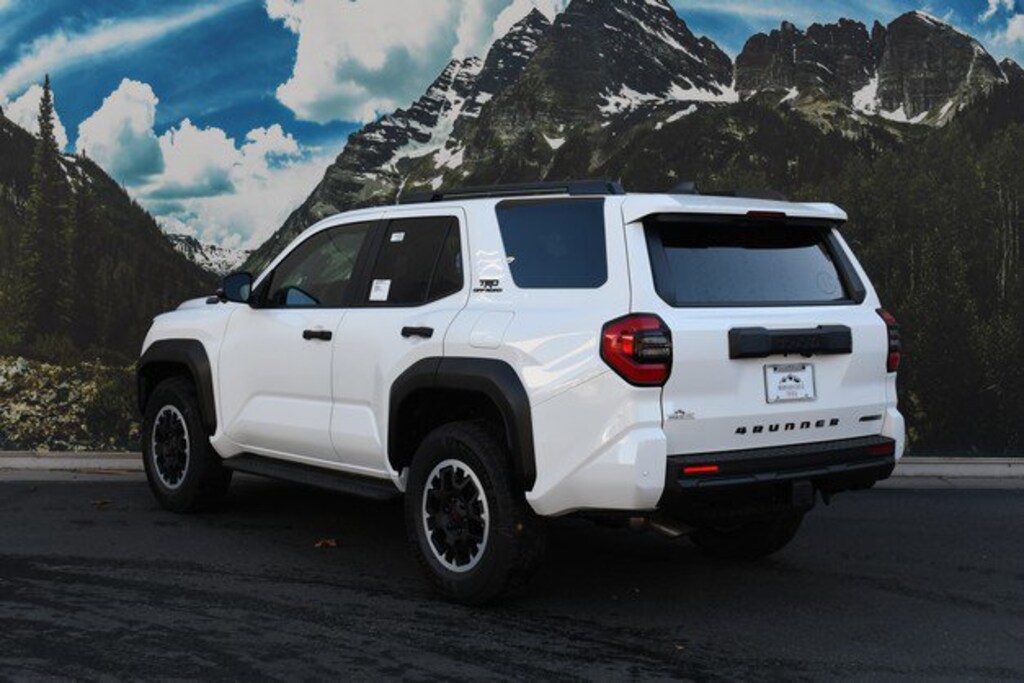 • Black honeycomb-style grille, mirror caps, door handles, and overfenders color-keyed rear spoiler black 'TRD OFF ROAD' and '4RUNNER' badges