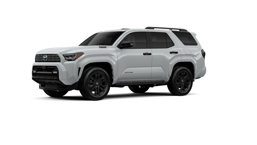 • Dark-chrome tri-bar grille gloss-black mirror caps and door handles color-keyed overfenders and rear spoiler gloss-black 'PLATINUM' and '4RUNNER' badges