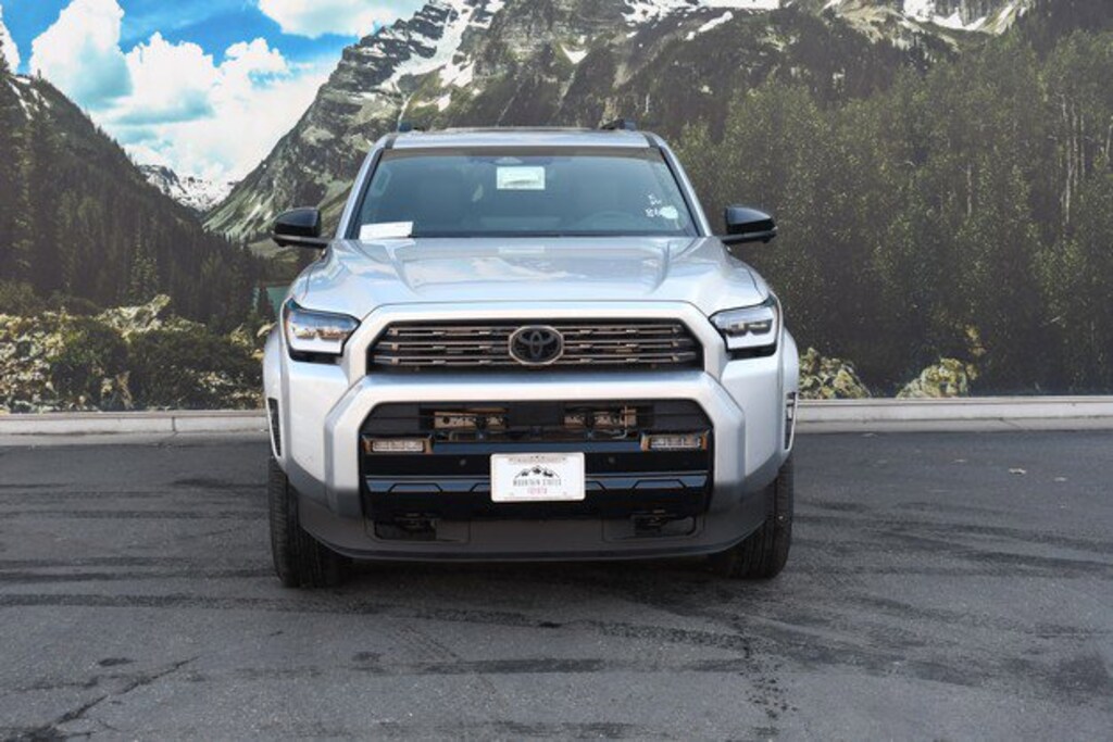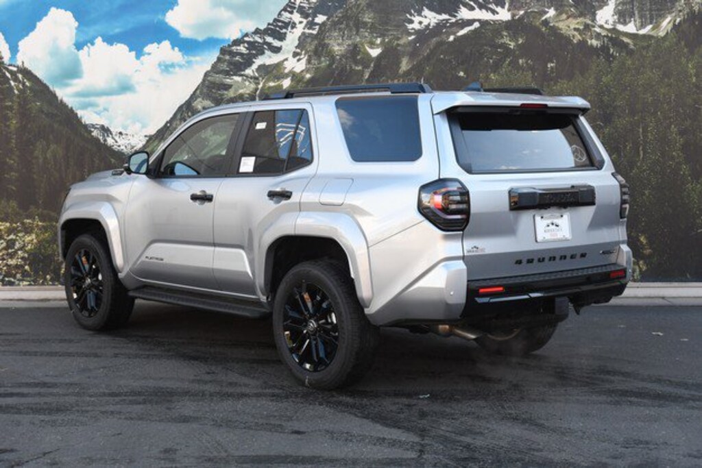 • Dark-chrome tri-bar grille gloss-black mirror caps and door handles color-keyed overfenders and rear spoiler gloss-black 'PLATINUM' and '4RUNNER' badges