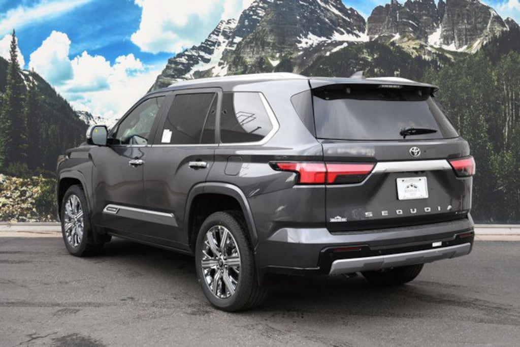 • Bright-chrome 'SEQUOIA' rear door badge chrome 'CAPSTONE' door badge, garnish and window molding color-keyed overfenders