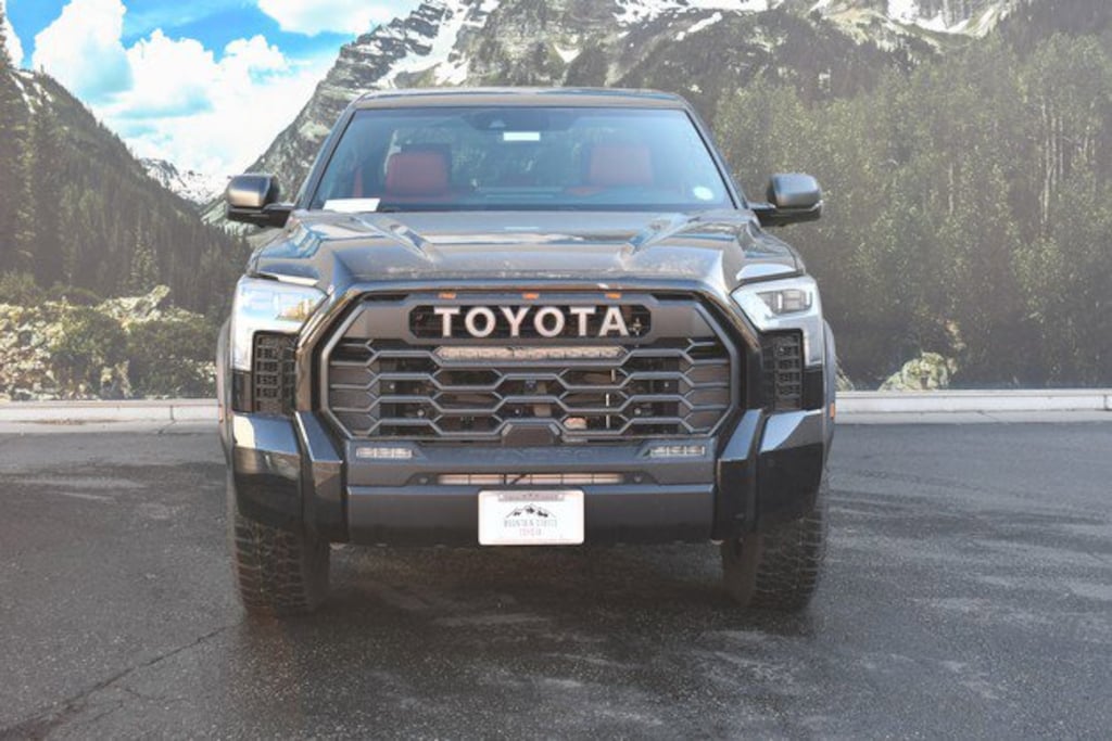 • Black 'TOYOTA' heritage grille with integrated light bar, amber marker lights, and color-keyed surround