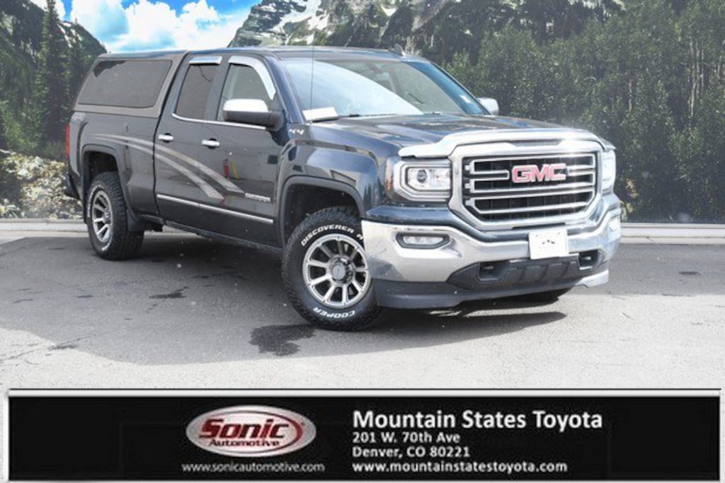 Come see this 2017 GMC Sierra 1500 SLE. Its Automatic transmission and Gas V8 5.3L/325 engine will keep you going. This GMC Sierra 1500 features the following options: ENGINE, 5.3L ECOTEC3 V8, WITH ACTIVE FUEL MANAGEMENT, DIRECT INJECTION and Variable Valve Timing, includes aluminum block construction (355 hp [265 kW] @ 5600 rpm, 383 lb-ft of torque [518 Nm] @ 4100 rpm; more than 300 lb-ft of torque from 2000 to 5600 rpm), Windows, power with driver express up and down and express down on all other windows, Wheels, 17 x 8 (43.2 cm x 20.3 cm) premium painted aluminum, bright machined, Wheelhouse liners, rear (Requires Crew Cab or Double Cab model.), Visors, driver and front passenger illuminated vanity mirrors, Transmission, 6-speed automatic, electronically controlled with overdrive and tow/haul mode. Includes Cruise Grade Braking and Powertrain Grade Braking, Transfer case, active, 2-speed electronic Autotrac with rotary controls, includes neutral position for dinghy towing (Included with 4WD models only.), Tires, P255/70R17 all-season, blackwall, Tire, spare P255/70R17 all-season, blackwall (Included and only available with (RBZ) P255/70R17 all-season, blackwall tires.), and Tire Pressure Monitoring System (does not apply to spare tire). See it for yourself at Mountain States Toyota, 201 W 70th Ave, Denver, CO 80221.