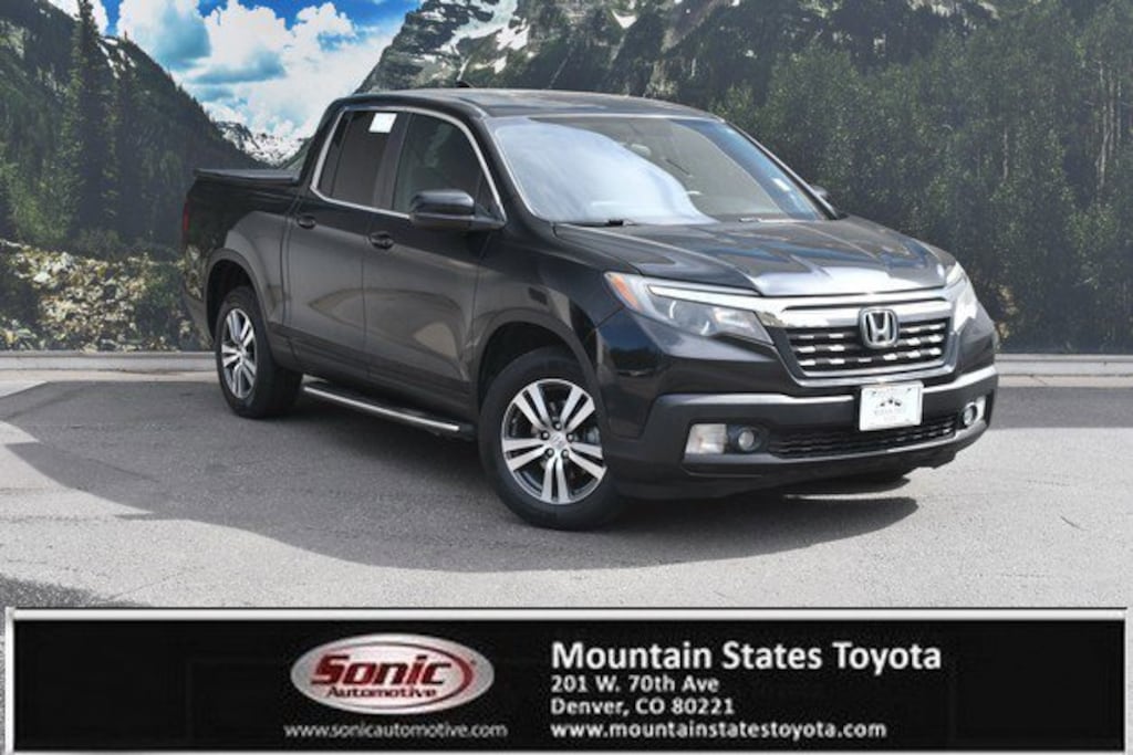 Check out this 2017 Honda Ridgeline RTL. Its Automatic transmission and Regular Unleaded V-6 3.5 L/212 engine will keep you going. This Honda Ridgeline features the following options: Wheels: 18 Machine-Finished Alloy, VSA Electronic Stability Control (ESC), Valet Function, Trip Computer, Transmission: 6-Speed Automatic, Transmission w/Driver Selectable Mode and HD Oil Cooler, Trailer Wiring Harness, Tires: P245/60R18 105H AS, Tire Specific Low Tire Pressure Warning, and Tailgate/Rear Door Lock Included w/Power Door Locks. See it for yourself at Mountain States Toyota, 201 W 70th Ave, Denver, CO 80221.