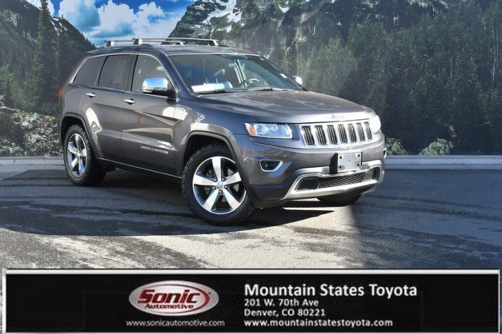 Look at this 2014 Jeep Grand Cherokee Limited. Its Automatic transmission and Regular Unleaded V-6 3.6 L/220 engine will keep you going. This Jeep Grand Cherokee comes equipped with these options: WHEELS: 20 X 8.0 ALUMINUM -inc: Tires: P265/50R20 BSW AS, TRANSMISSION: 8-SPEED AUTOMATIC (845RE) (STD), TRAILER TOW GROUP IV -inc: Rear Load Leveling Suspension, 7 & 4 Pin Wiring Harness, Class IV Receiver Hitch, Delete Rear Tow Hook, SINGLE PANE POWER SUNROOF, QUICK ORDER PACKAGE 23H -inc: Engine: 3.6L V6 24V VVT Flex Fuel, Transmission: 8-Speed Automatic (845RE), GRANITE CRYSTAL METALLIC CLEARCOAT, ENGINE: 3.6L V6 24V VVT FLEX FUEL (STD), BLACK, PREMIUM LEATHER TRIMMED BUCKET SEATS, Wireless Phone Connectivity, and Wheels: 18 x 8.0 Aluminum Polished. See it for yourself at Mountain States Toyota, 201 W 70th Ave, Denver, CO 80221.