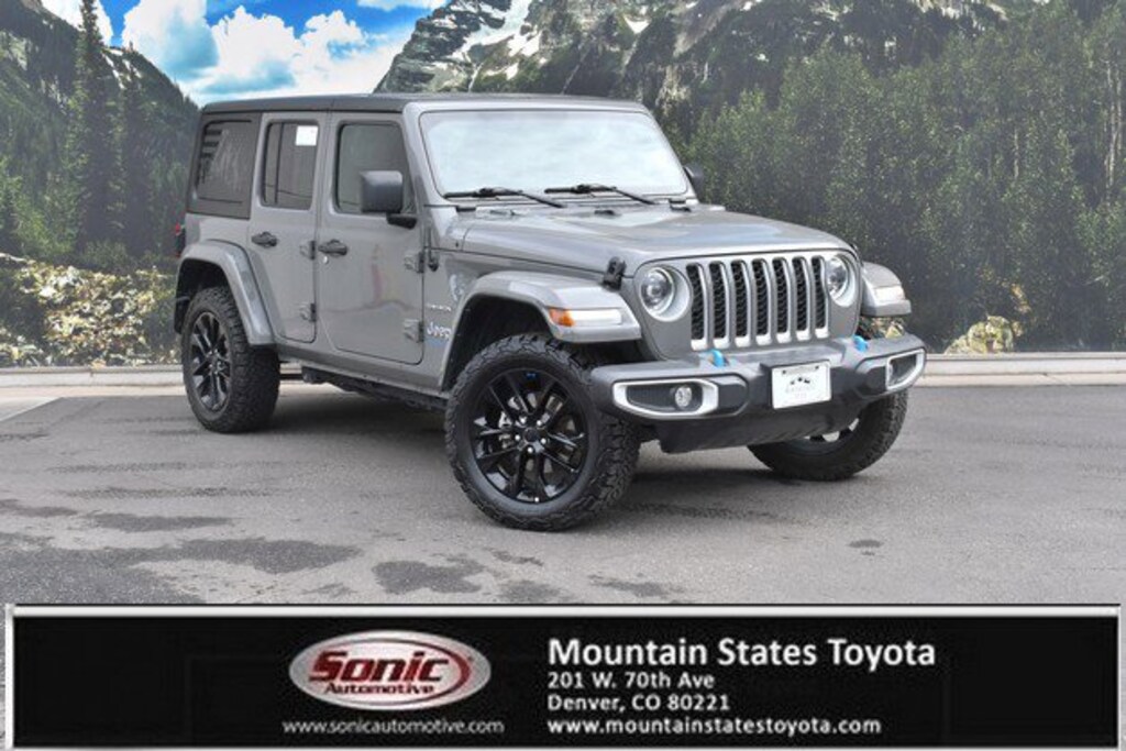 Look at this 2023 Jeep Wrangler 4xe Sahara. Its Automatic transmission and Intercooled Turbo Gas/Electric I-4 2.0 L/122 engine will keep you going. This Jeep Wrangler 4xe comes equipped with these options: TRANSMISSION: 8-SPEED AUTO 8P75PH PHEV (STD), TRAILER TOW & AUX SWITCH GROUP -inc: Class II Receiver Hitch, 700 Amp Maintenance Free Battery, 7 & 4 Pin Wiring Harness, Auxiliary Switches, STING-GRAY CLEARCOAT, QUICK ORDER PACKAGE 29P SAHARA -inc: Engine: 2.0L I4 DOHC DI Turbo PHEV, Transmission: 8-Speed Auto 8P75PH PHEV, FRONT LICENSE PLATE BRACKET, ENGINE: 2.0L I4 DOHC DI TURBO PHEV (STD), BLACK, PREMIUM MCKINLEY TRIMMED SEATS, BLACK 3-PIECE HARD TOP -inc: Freedom Panel Storage Bag, Rear Window Defroster, Rear Window Wiper/Washer, Wireless Phone Connectivity, and Wheels: 20 x 8 Fully Painted Aluminum. Test drive this vehicle at Mountain States Toyota, 201 W 70th Ave, Denver, CO 80221.