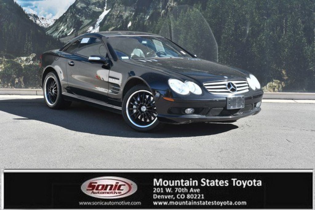 Look at this 2004 Mercedes-Benz SL-Class AMG. Its Automatic transmission and Gas V8 5.5L/332 engine will keep you going. This Mercedes-Benz SL-Class has the following options: Xenon high intensity discharge low-beam headlamps-inc: polycarbonate lenses, automatic level control, halogen high-beams, heated headlamp washers, light- sensing auto-on headlamps, automatic lamp substitution, Warning lights/messages-inc: open door, exterior lamp failure, low fuel/engine oil/coolant/washer fluid, Touch turn signals (flashes three times w/one touch), Titanium grey grille w/(4) ribs, Tele Aid global positioning system (GPS) satellite system w/concierge service, SmartKey system-inc: remote central locking system, anti-theft engine immobilizer, driver-programmable user-recognition features, drive away automatic locking,, SmartKey infrared-remote-inc: opening trunk, opening/closing windows, panic alarm, fuel filler door, lock/unlock all doors or drivers, raising/lowering hardtop, Single rear fog lamp, Sensotronic brake control-inc: soft stop, automatic brake drying, predictive brake priming, and Rear window defroster w/auto-shutoff based on time/driving speed/exterior temp. Stop by and visit us at Mountain States Toyota, 201 W 70th Ave, Denver, CO 80221.