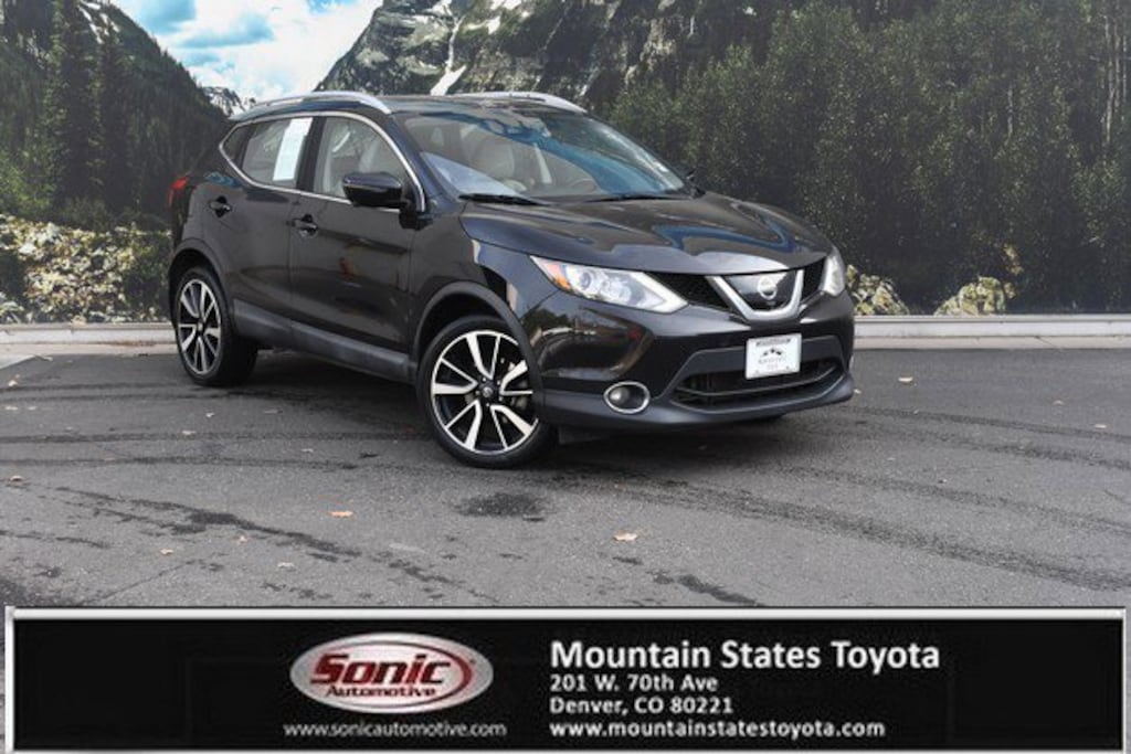 Look at this 2017 Nissan Rogue Sport SL. Its Variable transmission and Regular Unleaded I-4 2.0 L/122 engine will keep you going. This Nissan Rogue Sport comes equipped with these options: MAGNETIC BLACK, [Z66] ACTIVATION DISCLAIMER, [B93] CHROME REAR BUMPER PROTECTOR, [B92] BLACK SPLASH GUARDS (SET OF 4), Wheels: 19 x 7.0 Aluminum Alloy, Wheels w/Machined w/Painted Accents Accents, Valet Function, Trip Computer, Transmission: Xtronic CVT Automatic -inc: manual shift mode, and Transmission w/Driver Selectable Mode. Stop by and visit us at Mountain States Toyota, 201 W 70th Ave, Denver, CO 80221.