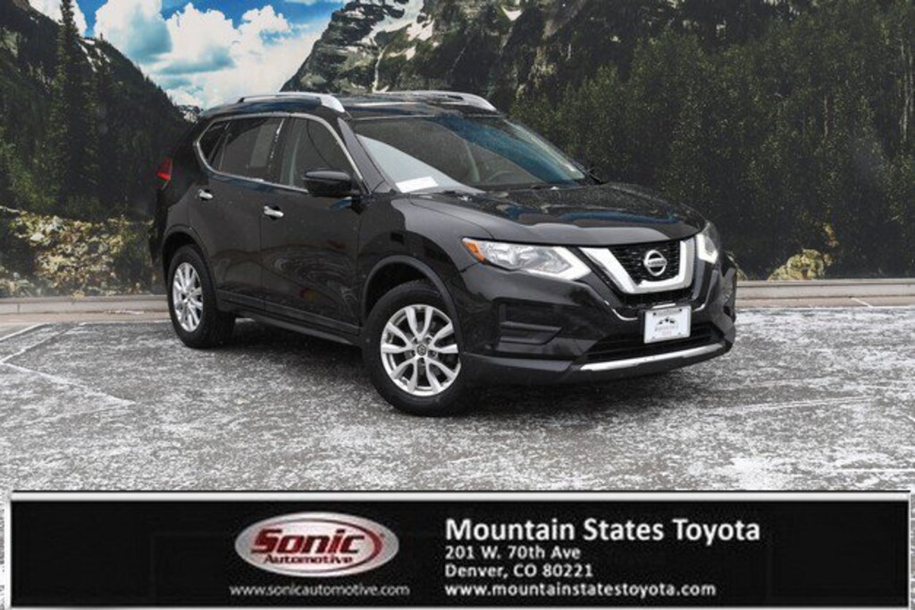 Look at this 2017 Nissan Rogue SV. Its Variable transmission and Regular Unleaded I-4 2.5 L/152 engine will keep you going. This Nissan Rogue comes equipped with these options: MAGNETIC BLACK, CHARCOAL, CLOTH SEAT TRIM, [Z66] ACTIVATION DISCLAIMER, [K02] SV SUN & SOUND TOURING PACKAGE -inc: Bose Audio, 3 speakers (9 total), Power Panoramic Moonroof, [B93] CHROME REAR BUMPER PROTECTOR, [B92] BLACK SPLASH GUARDS (SET OF 4), Wireless Phone Connectivity, Wheels: 17 Aluminum-Alloy, Trip Computer, and Transmission: Xtronic CVT Automatic -inc: sport mode switch. Test drive this vehicle at Mountain States Toyota, 201 W 70th Ave, Denver, CO 80221.
