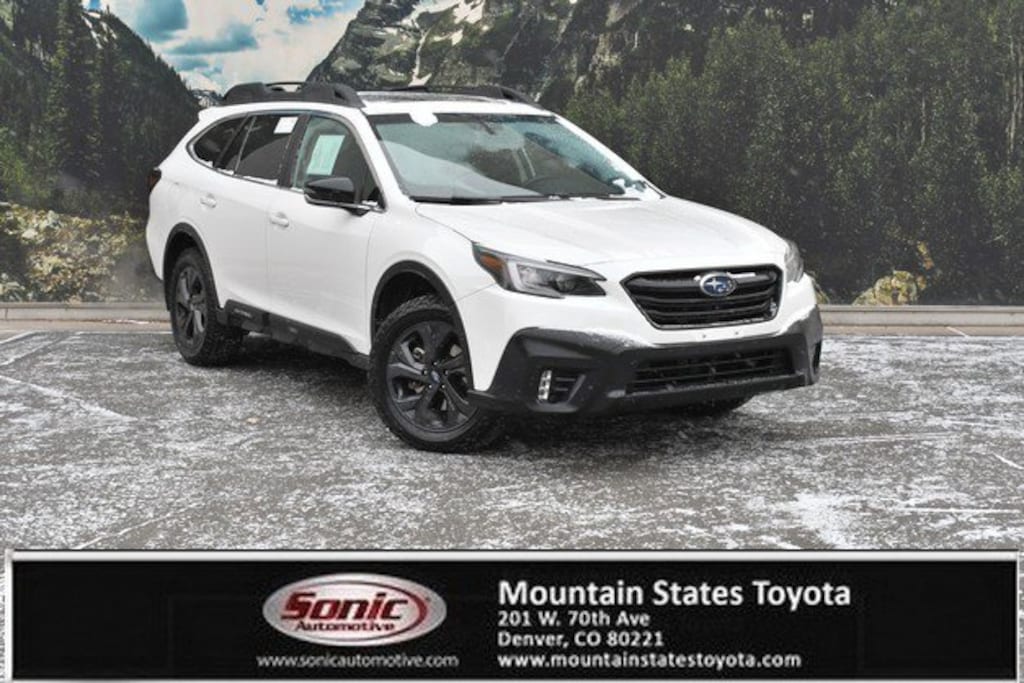 Come see this 2021 Subaru Outback Onyx Edition XT. Its Variable transmission and Intercooled Turbo Regular Unleaded H-4 2.4 L/146 engine will keep you going. This Subaru Outback has the following options: SPLASH GUARDS -inc: Part number J101SAN100, REAR SEAT BACK PROTECTOR -inc: Part number J501SAN221, REAR BUMPER COVER -inc: Part number E771SAN100, GRAY, STARTEX-TRIMMED UPHOLSTERY -inc: green stitching, CRYSTAL WHITE PEARL, AUTO-DIMMING EXTERIOR MIRROR W/APPROACH LIGHT -inc: Part number J201SAN000, ALL-WEATHER FLOOR LINERS -inc: Part number J501SAN100, Wireless Phone Connectivity, Wheels: 18 x 7J Black Aluminum Alloy, and Voice Activated Dual Zone Front Automatic Air Conditioning. Stop by and visit us at Mountain States Toyota, 201 W 70th Ave, Denver, CO 80221.