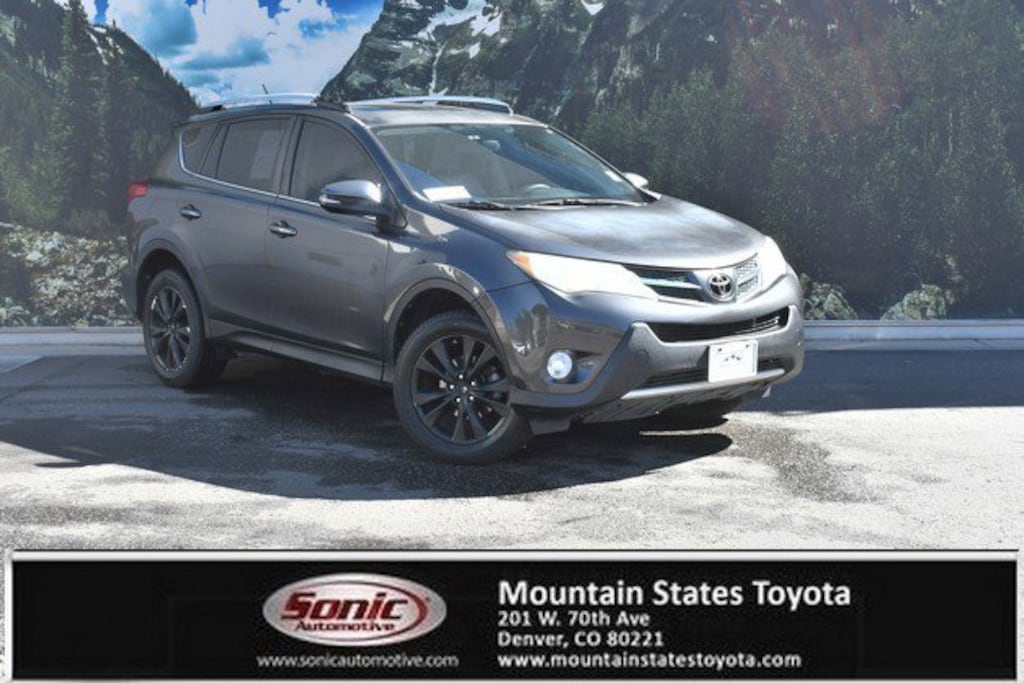 Come see this 2013 Toyota RAV4 Limited. Its Automatic transmission and Gas I4 2.5L/152 engine will keep you going. This Toyota RAV4 features the following options: Traction control (TRAC), Tire pressure warning system, Tilt/telescopic steering wheel -inc: audio, display & Bluetooth controls, SofTex synthetic leather-trimmed seats -inc: 8-way pwr driver seat w/sport bolsters, driver memory, driver pwr lumbar, 4-way manual passenger seat w/sport bolsters, seatback pockets, SofTex covered sliding center armrest -inc: console storage box, Smart Key remote keyless entry -inc: push button start, pwr liftgate, Side impact door beams, Roof rails, Rear window defogger w/timer, and Rear double wishbone coil spring suspension -inc: stabilizer bar. Test drive this vehicle at Mountain States Toyota, 201 W 70th Ave, Denver, CO 80221.