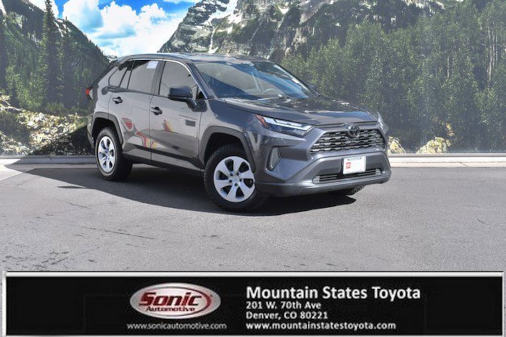 Come see this 2023 Toyota RAV4 LE. Its Automatic transmission and Regular Unleaded I-4 2.5 L/152 engine will keep you going. This Toyota RAV4 has the following options: Wi-Fi Connect with up to 3GB within 1-month trial Mobile Hotspot Internet Access, Wheels: 17 Steel -inc: silver six-spoke wheel covers, Wheels w/Full Wheel Covers, Urethane Gear Shifter Material, Trip Computer, Transmission: 8-Speed Automatic, Transmission w/Driver Selectable Mode, Sequential Shift Control and Oil Cooler, Tracker System, Towing Equipment -inc: Trailer Sway Control, and Tires: 225/65R17 AS. Stop by and visit us at Mountain States Toyota, 201 W 70th Ave, Denver, CO 80221.
